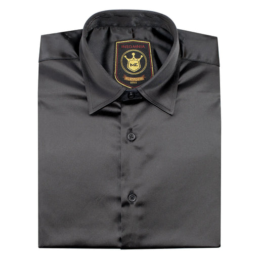 Black Satin Regular-Fit Dress Shirt