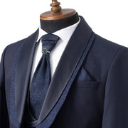 Duncan | Navy Blue 3-Piece Slim-Fit Tuxedo with Removable Shawl