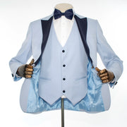 Light Blue Fretted 3-Piece Slim-Fit Tuxedo