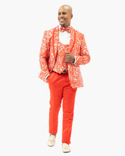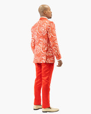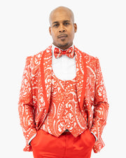 The Red Woven Baroque 3-Piece Slim-Fit Tuxedo is built for a bold entrance. With its matching vest, slim fit, and standout woven baroque pattern, it brings strong visual impact while keeping the look sharp and formal.