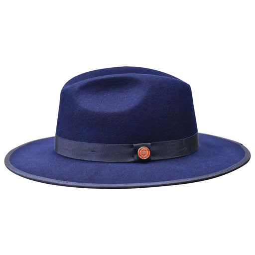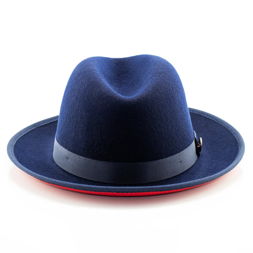 View full detailsNavy Blue Wool Pinch Front Fedora With Red Bottom