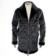 Impressively styled with a warm, faux-fur trim and a finely detailed knitted exterior, this designer overcoat's opulent swagger smoothly accents your favorite casual outfits.