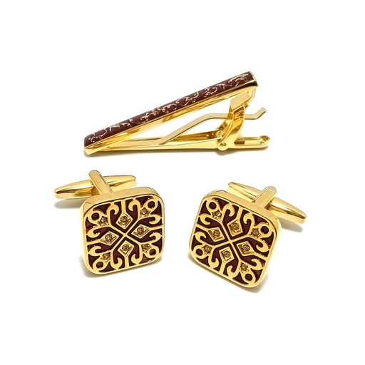 View full detailsSquare Jeweled Cufflink Tie-Bar Set