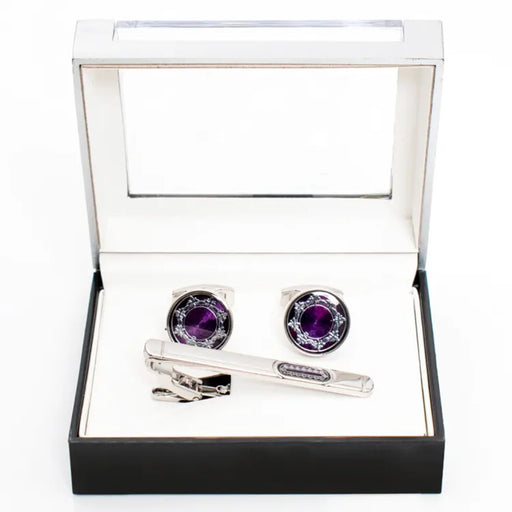 View full detailsRound Crystal Cufflink Tie-Bar Set