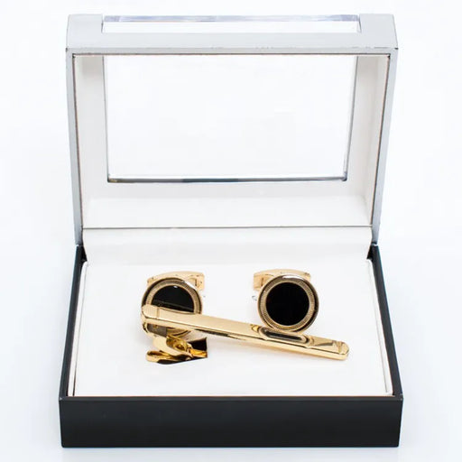 View full detailsRound Meandering Ebony Cufflink Tie-Bar Set