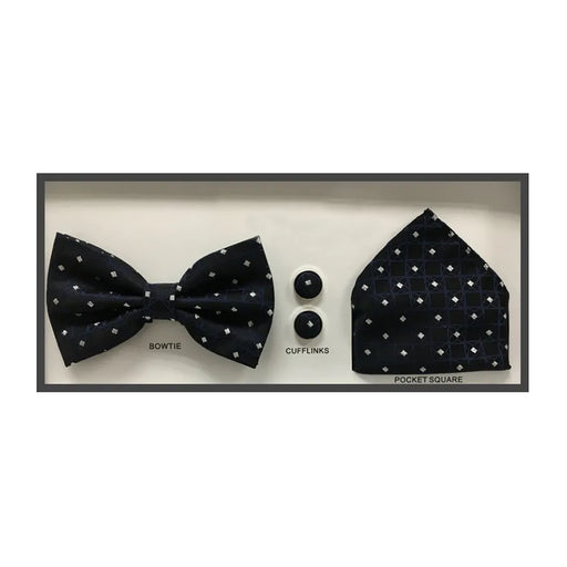 The perfect capstone to complete your outfit, this bow-tie is decorated by a showy diamond design motif. Includes matching pocket square and cuffli...