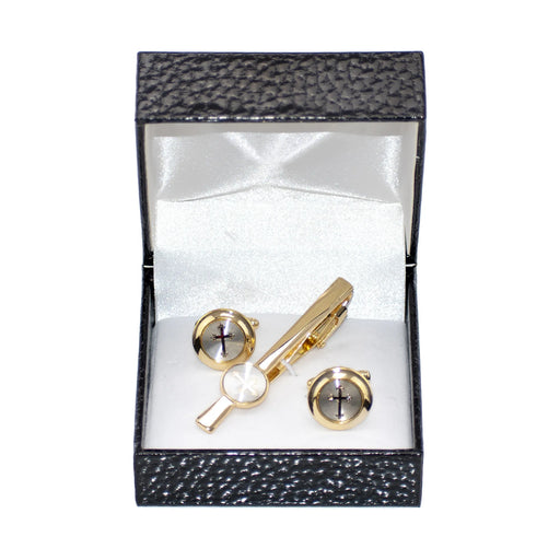 Gold Cross Cufflink Tie-Bar Set