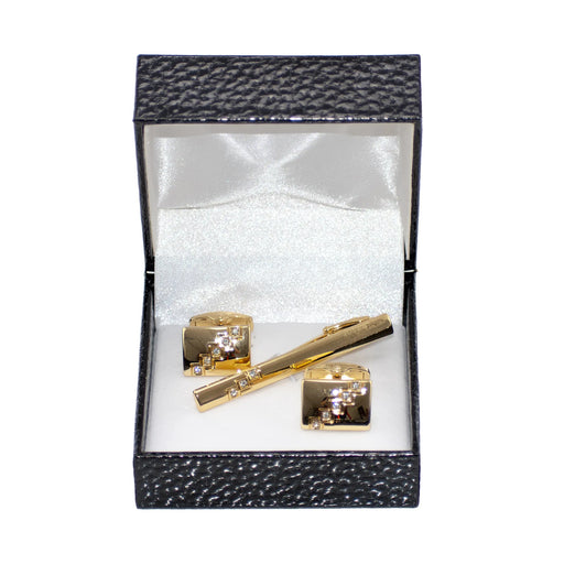 Gold Crystal Square Cufflink Tie-Bar Set