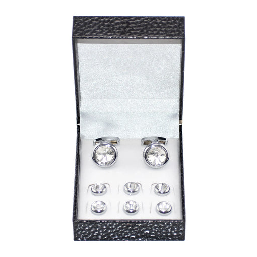 Round Crystal Cufflink Tie-Bar Set