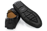 A sleek bridle and metal bit top off this handsome loafer with a segmented sole and a textured metallic upper for added style.