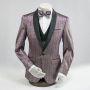 Burgundy Metallic Patterned 3-Piece Tailored-Fit Tuxedo