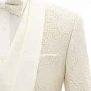 Off-White Floral Glitter 3-Piece Tailored-Fit Tuxedo