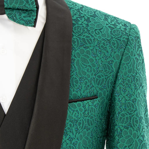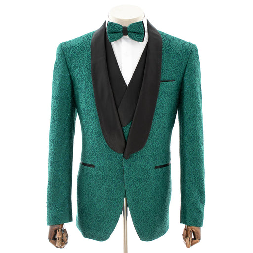 Emerald with Woven Gold Filigree 3-Piece Slim-Fit Tuxedo