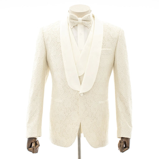 Off-White Floral Glitter 3-Piece Tailored-Fit Tuxedo
