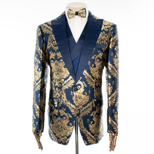 Navy with Woven Gold Filigree 3-Piece Slim-Fit Tuxedo