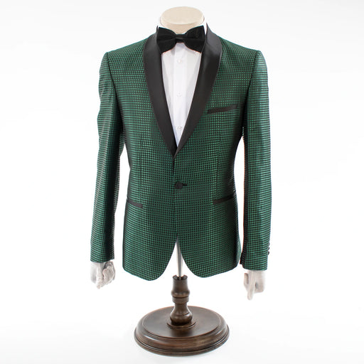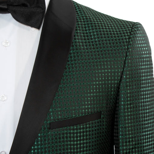 Green Metallic Diamond Check 3-Piece Slim-Fit Tuxedo