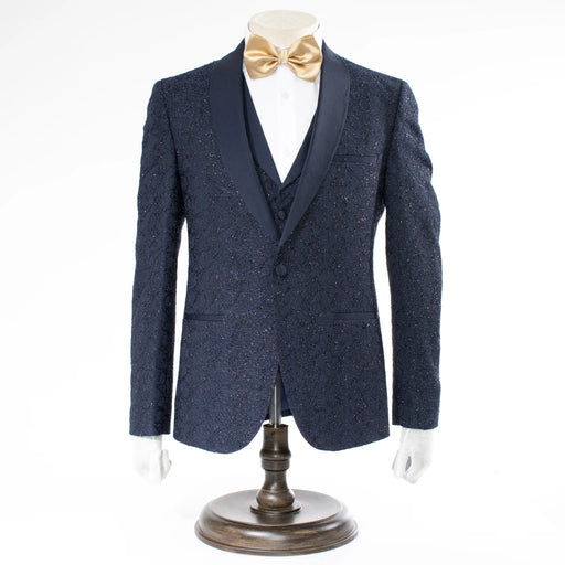 Navy 3-Piece Glitter Damask Tuxedo