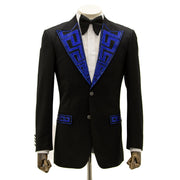 Black with Royal Blue Rhinestone Lapel Modern-Fit Tuxedo Jacket