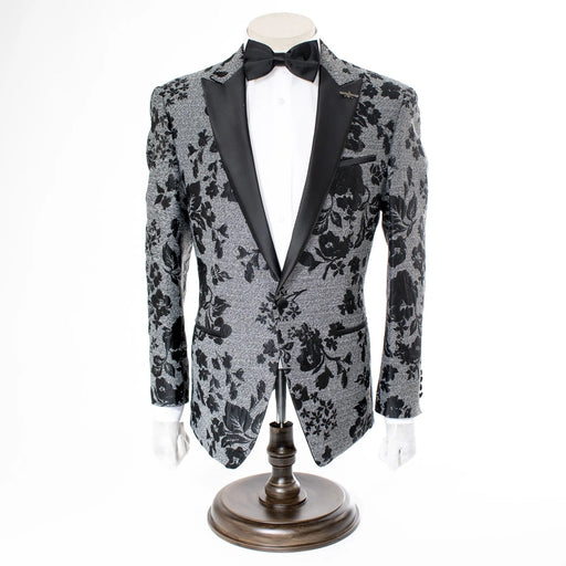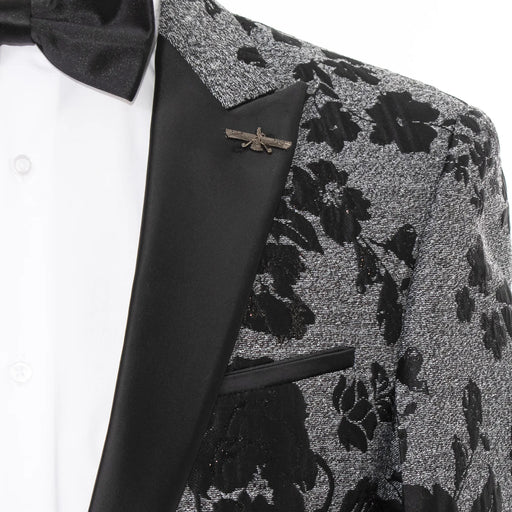 Black with Silver Flora Tailored-Fit Tuxedo Jacket