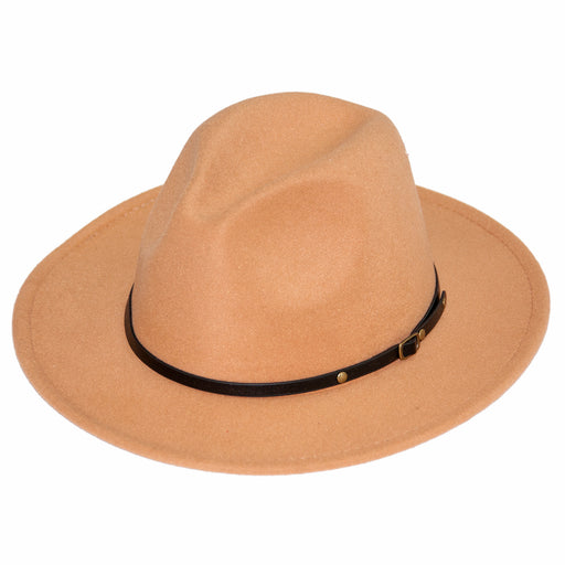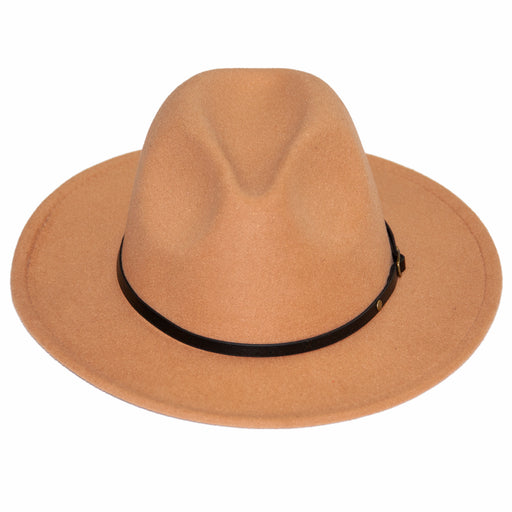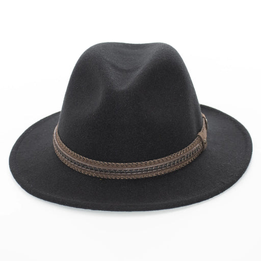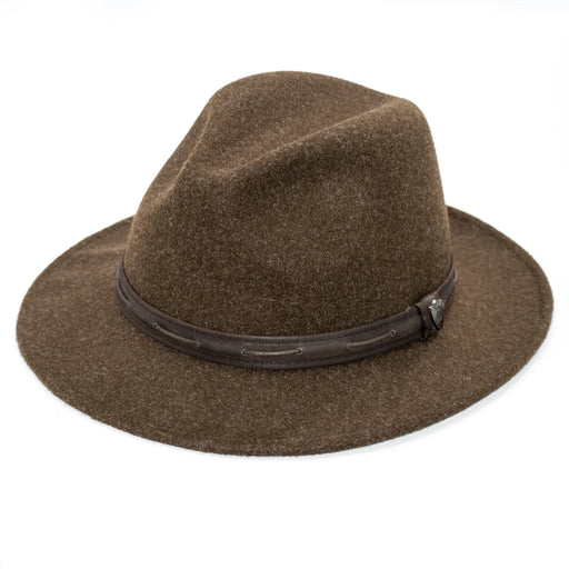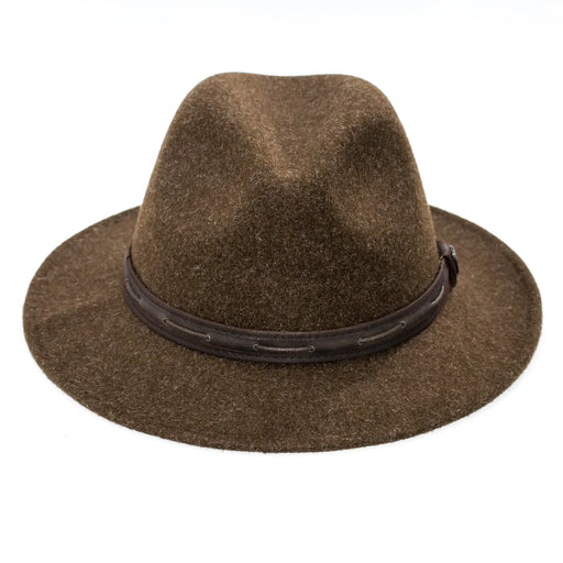 This felt safari style hat with 3 inch brim and faux leather band is a stylish choice for headgear for any formal outdoor event.