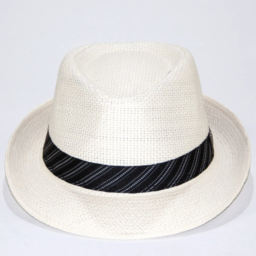 This Fedora with 2” brim and striped ribbon band is a stylish choice for summer headgear for any formal outdoor event.