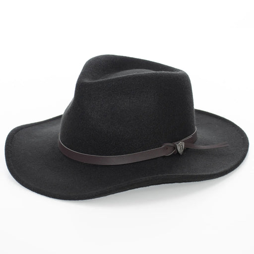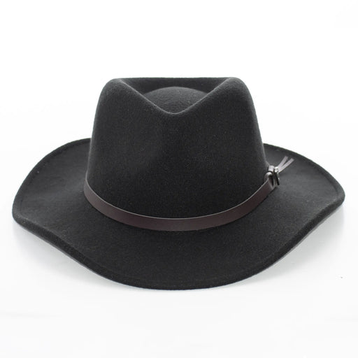 This felt style Outback hat with 3 inch brim and faux leather band is a stylish choice for headgear for any formal outdoor event.