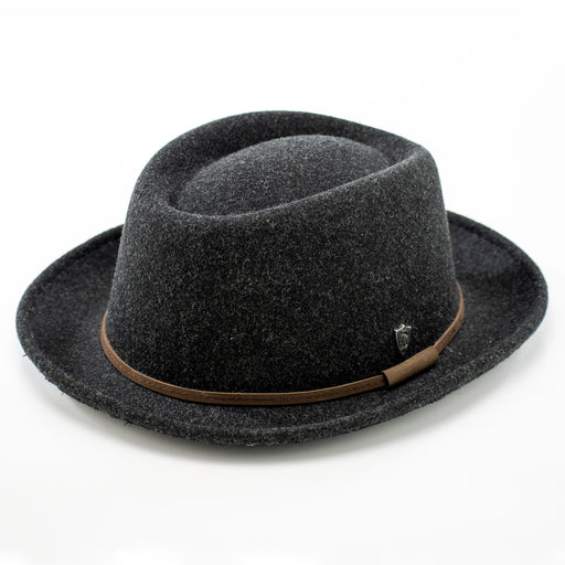 Elevate your style with this sophisticated porkpie fedora, expertly crafted from 100% pure wool. This classic hat features a wide 2.25-inch brim th...