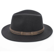 This felt safari style hat with 3 inch brim and faux leather band is a stylish choice for headgear for any formal outdoor event.