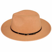 A handsome leather strap adds vintage style to this wide-brim fedora crafted from pure wool, perfect for sunny afternoon strolls.
