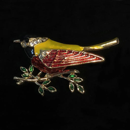 This charming songbird lapel pin features expertly detailed wings and tree-branch motif, adding a touch of gentle style to any outfit.