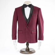 Burgundy Double-Breasted 3-Piece Tailored-Fit Tuxedo