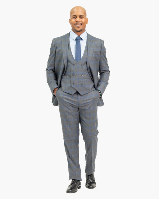 View full detailsCharcoal And Blue Window Pane Slim-Fit 3-Piece Suit