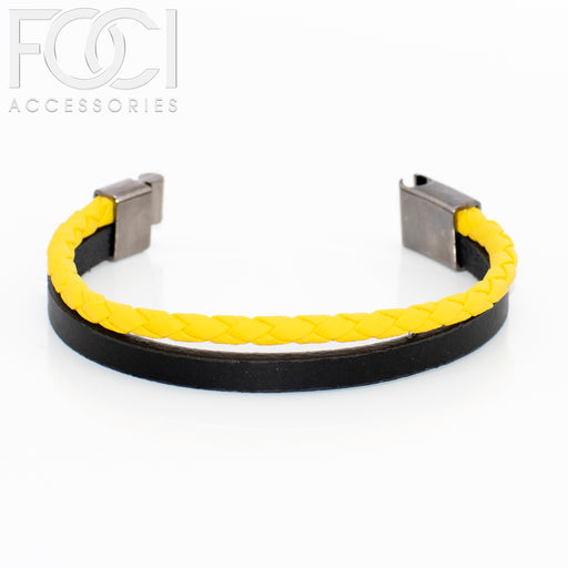View full detailsUnisex Black Leather and Yellow Rope Bracelet With Closure