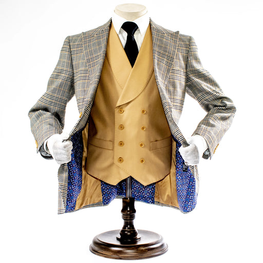 Camel 3-Piece Modern-Fit Plaid Wool Suit With Peak Lapels