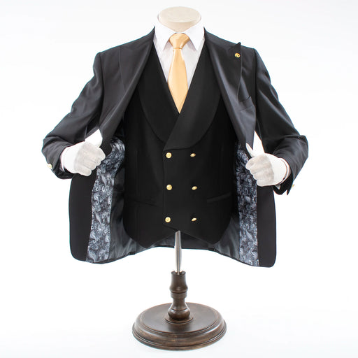 View full detailsBlack 2-Piece Double-Breasted Tailored-Fit Suit With Gold Buttons