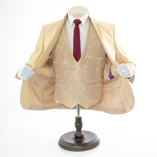 View full detailsBeige Floral 3-Piece Slim-Fit Suit With No Lapels