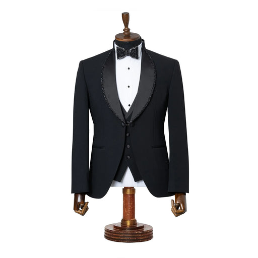 Black 3-piece slim-fit tuxedo With Trimmed Shawl Lapel
