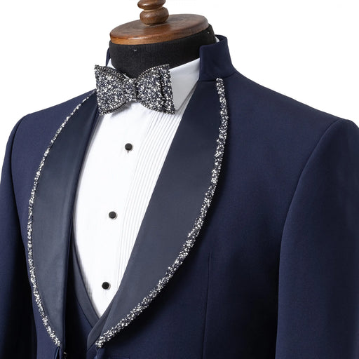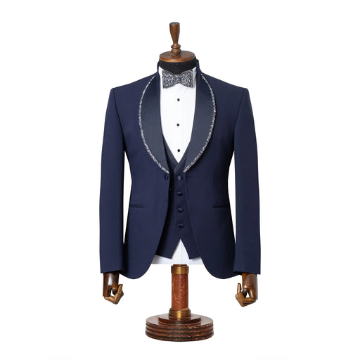 View full detailsNavy Blue 3-piece slim-fit tuxedo With Trimmed Shawl Lapel