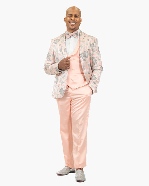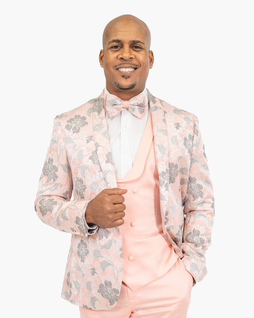 Pink Floral Motif 3-Piece Slim-Fit Tuxedo