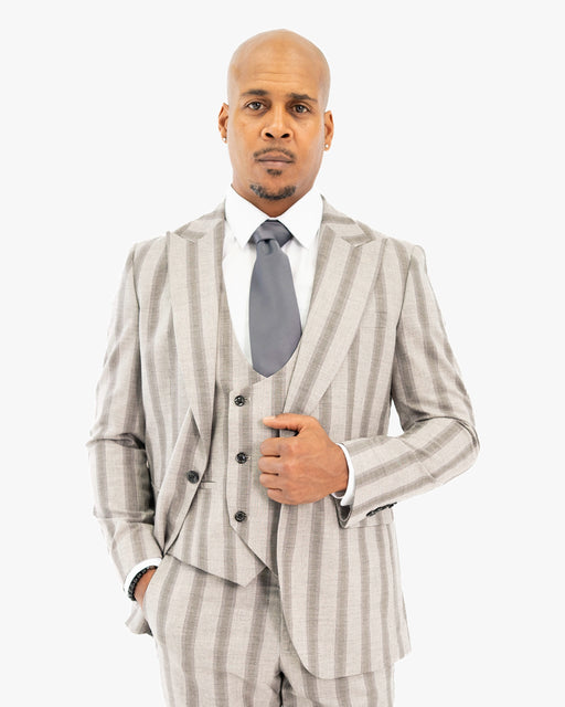 View full detailsLight Gray Multitrack Stripe 3-Piece Tailored-Fit Suit