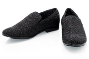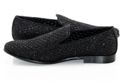 Black Glitter Pattern Smoking Loafers