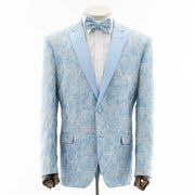 Blue Floral Slim-Fit Glitter Tuxedo Jacket