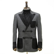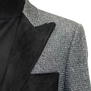 Charcoal Waffle-Weave Modern-Fit Tuxedo Jacket with Velvet Trim