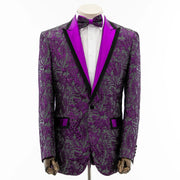 Dark Purple Metallic Floral Slim-Fit Dinner Jacket