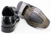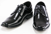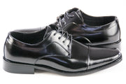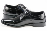 This traditional leather cap-toe lace-up is classic staple for any businessman.  Minimalist and classy it can be paired with a business suit for the office or a suit for a wedding.