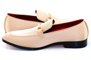 Elevate your footwear collection with this stunning pair of apron-toe slip-on smoking loafers, designed for the modern man who appreciates style and sophistication. Crafted from soft velvet, these loafers feature a chain linked bit that adds a touch of class to your ensemble. These versatile loafers pair beautifully with suit or tuxedos for formal occasions making them an essential addition to your wardrobe.