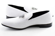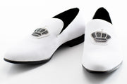 White Velvet Loafer With Jeweled Crown Piece