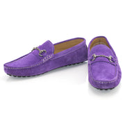 Suede leather defines this stylish loafer's attractive style, while a hip moc-toe and chic segmented sole make it a comfortable, easily pairable option for casual or semi-formal outfits. Metallic tongue-bit hardware and a slip-on design make it versatile, go-to option for flashier outfits.