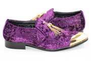 Purple Velvet and Gold Flake Tasseled Smoking Loafer