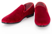 A minimalist design and sleek contours highlight fine embroidered damask and a patent-black outsole with this elegant Venetian loafer that gracefully accents tuxedos or tuxedo jackets.
